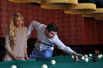 Зал, где проходят занятия оборудован столами для игры в бильярд и другим необходимым инвентарем. Каждому ученику подберут бильярдный кий в соответствии с его параметрами. Для удобства рядом с игровой зоной есть мягкий кожаный диван для отдыха.